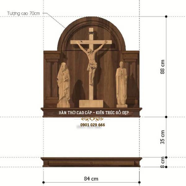 Bàn thờ Công Giáo mẫu C9 - Kích thước bàn thờ